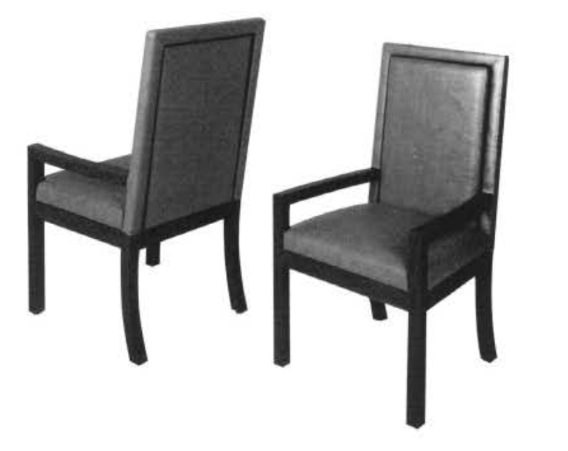 - Chair with arms – padded or metal (as shown) or arms shortened for dining use